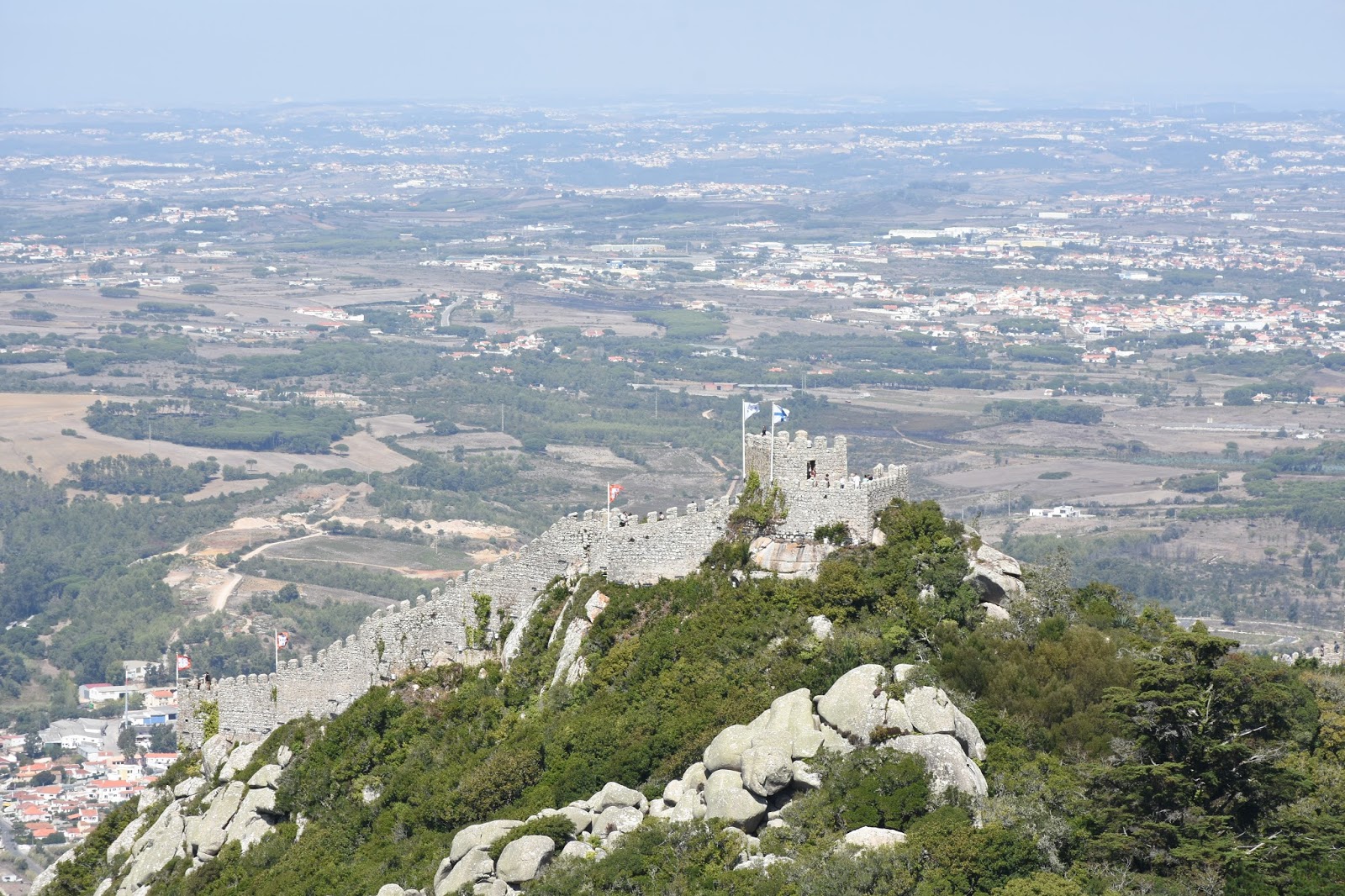 Po opuszczeniu niewielkiego dworca, złapaliśmy turystyczny autobus za kilka euro i ruszyliśmy do pierwszej z wybranych atrakcji: pozostałości Zamku Maurów z VIII wieku. Właściwie odwiedziny tego zabytku polegają na długim spacerze po pozostałych po twierdzy murach obronnych, z których roztaczają się piękne widoki na pobliskie pałace i zamki oraz piękne posiadłości, a także na Pałac Pena i Quinta da Regaleira.